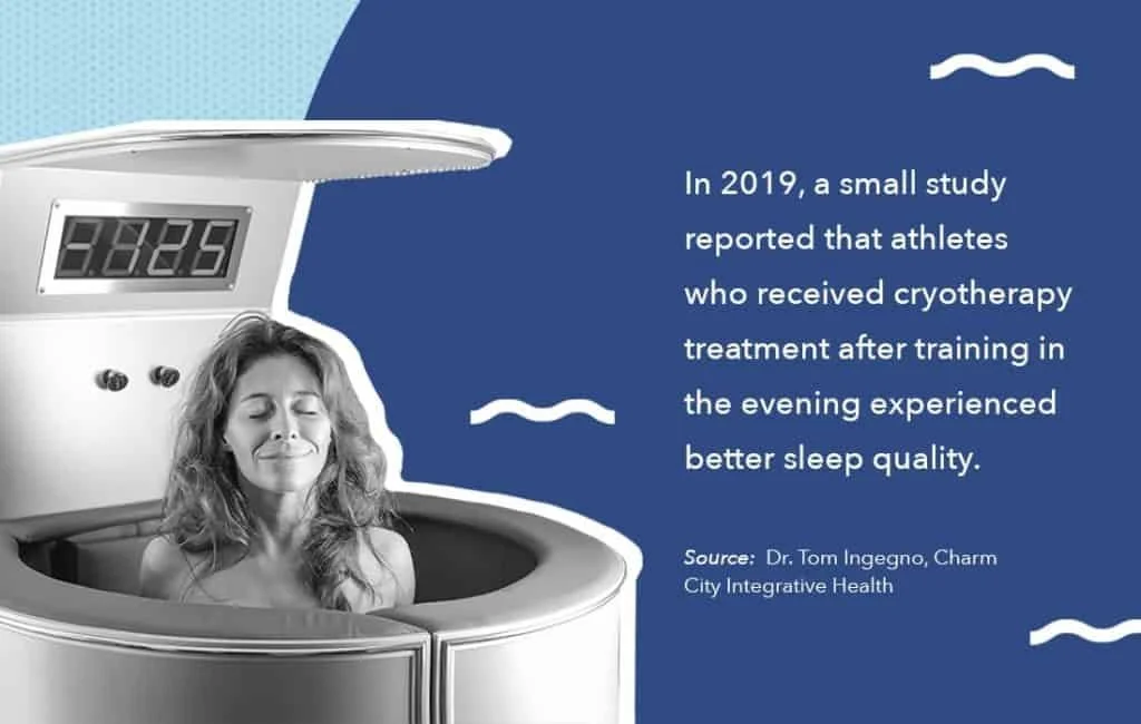 “According to Dr. Tom Ingegno, doctor of acupuncture and Chinese medicine at Charm City Integrative Health, in 2019, a small study reported that athletes who received cryotherapy treatment after training in the evening experienced better sleep quality. He also stated that “Many cryotherapy patients report a great night of sleep the evening after cryotherapy. It is a pleasant surprise for many first-timers.”